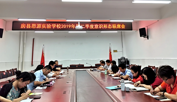 房县新闻网讯 通讯员 樊炎炎 报道: 为及时研究意识形态工作面临的新形势和遇到的新情况、分析研判学校意识形态领域的总体态势和研究部署阶段性工作任务,6月20日晚,房县思源实验学校在校五楼会议室召开2019年第二季度意识形态工作联席会议。党支部中心组理论学习成员出席了会议,校入党积极分子、青年教师、党外知识分子参加了会议。会议由党支部书记张明虎同志主持。