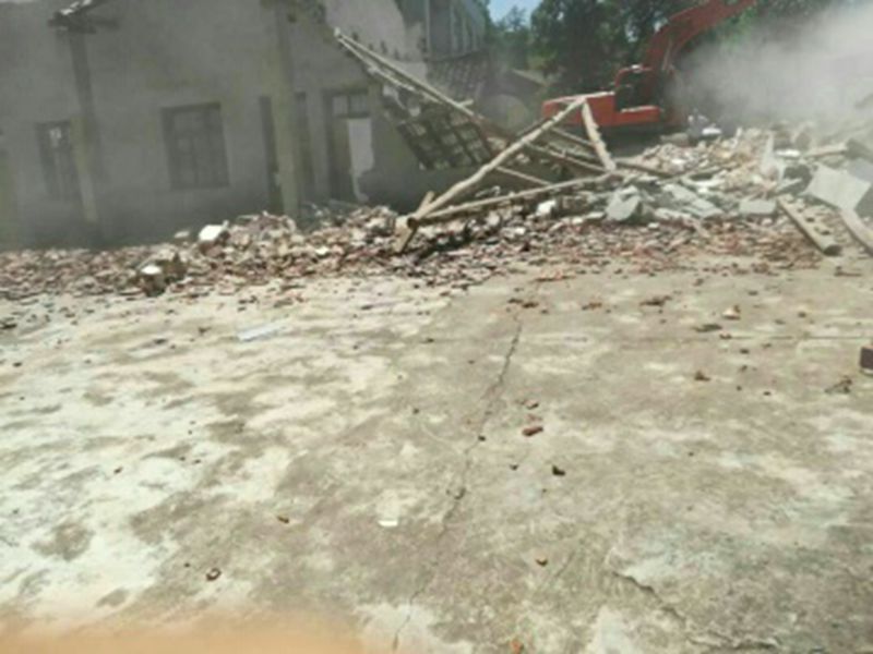 随后,尹吉甫中心学校校长顶着38度的高温亲临榔峪河教学点,监督工程队拆除裂缝的围墙及校内的危房,周校长指出暑假期间也必须安全施工,争取早日完工,以免给开学工作带来不便。