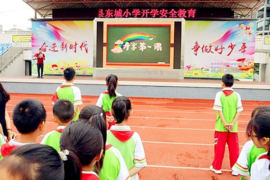 房县新闻网讯 通讯员 李英 报道:中央电视台“开学第一课”寄托着社会对学生的深沉关爱和对学生成长的深切关怀,为让学生们更好的迎接新学期的到来,以饱满的热情投入到新的学习中,为使学生能够实实在在的接收到这一份特别的“礼物”,9月2日上午9点整,利用升国旗时间,东城小学组织全校师生近3000余人在该校操场上共同收看了由中宣部、教育部和中央广播电视总台联合推出的大型公益节目《开学第一课》。