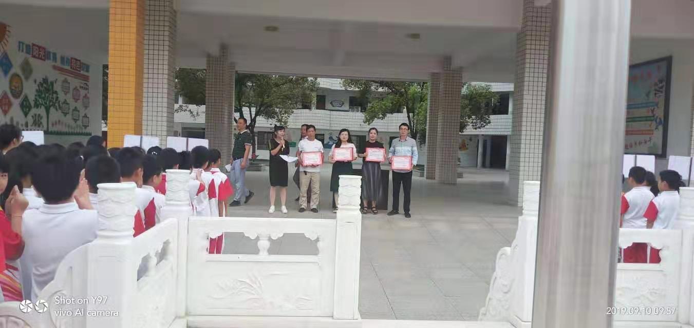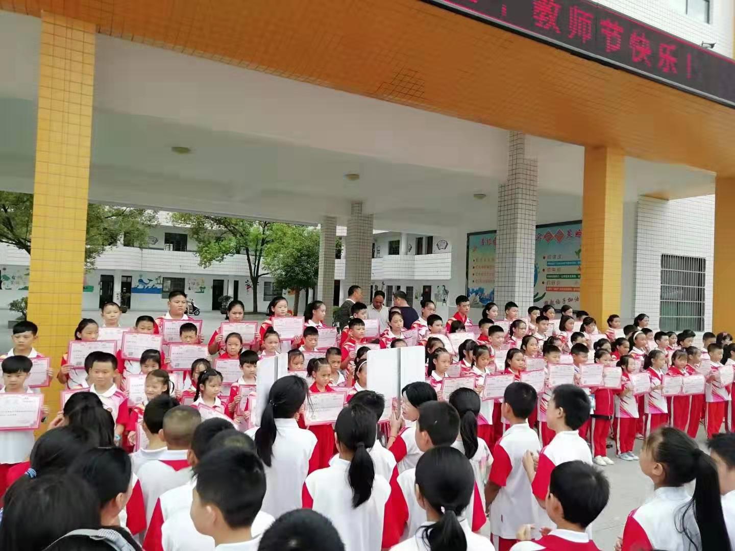 9月10日上午,八一希望小学全体师生在学校大院里集会,隆重庆祝第35个教师节。庆祝仪式上,学校对2018至2019学年度涌现出来的先进教师进行了表彰。学校领导分别为县、镇、校三个等级的优秀教师和优秀班主任颁发了荣誉证书。学生代表分别向郑燕等12位获奖教师献花。全体师生对这些兢兢业业、无私奉献的老师们报以热烈的掌声。获奖代表李艳老师在大会上说,学校领导颁奖、学生献花,这是对老师工作业绩的肯定,也是对全体老师的关爱和勉励……