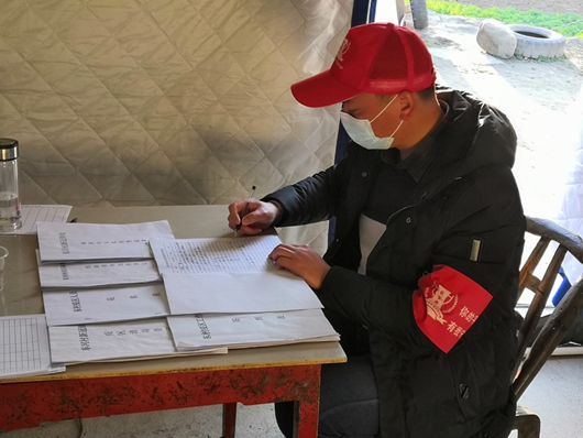 “按照村两委安排,两村交界处设有两道关卡,除县下达文件的六类车辆、四类人员、三类物资通行以外,严禁车辆、人员流动,切断病毒传播途径。严格落实24小时值班值守制度,做好出入人员管理、体温测量登记,对在路上闲逛人员做好宣传劝阻等等,这些都是我在卡点值班的主要工作。此外,按照网格化管理、全员健康监测要求,我也有20户包保户,大多数都在魏家沟,现在沟口路已封,需要每天步行进沟上门测量体温,排查有无生活困难和需求,切实掌握他们的基本情况,确保监测到位不出问题。”谢鹏的不定时记录本上也对他主要工作进行了梳理——每天坚持上门测量体温,询问健康状况,做好疫情宣传和防护,这是他每天必要的工作步骤,剩下的时间就是在疫发区村组进行值班执勤,月余以来,未曾落下一天。“疫情不除,誓不后退。我还可以坚持下去”,笔尖纸下,他更用实际行动坚守践行初心使命,守护群众健康平安。