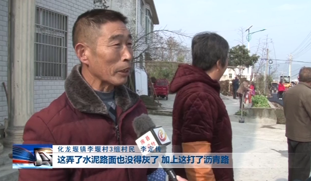 化龙堰镇李堰村3组村民李定传说:路上过一趟车,灰大得很,这打了沥青路,搞得更美观了、更好,群众都拥护,这个路修的特别好