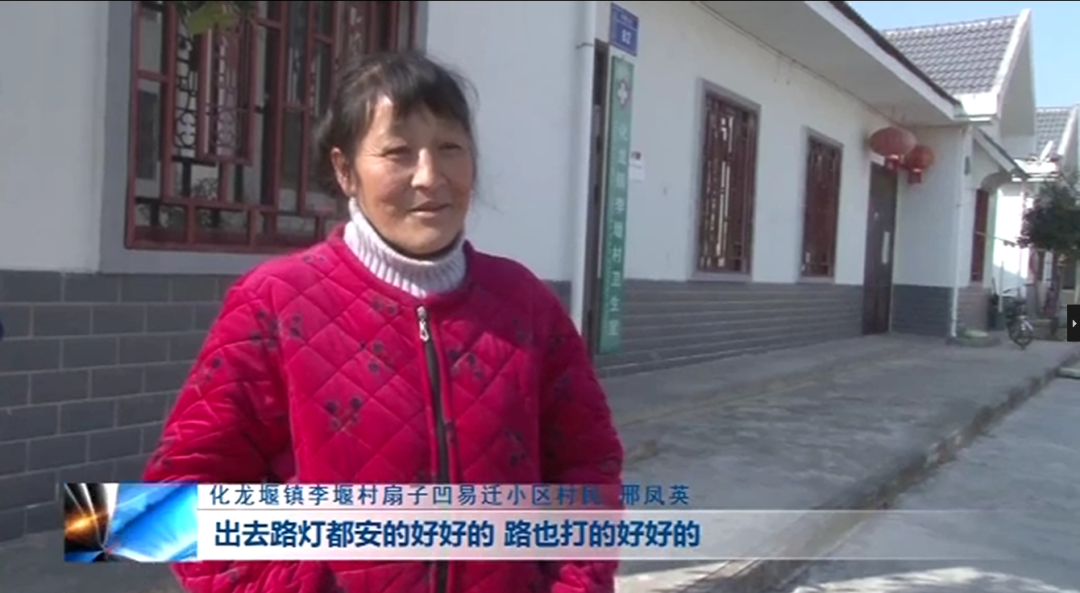 化龙堰镇李堰村扇子凹易迁小区居民邢凤英:现在的生活幸福的很,村卫生室就在我们家门口,出去路灯都安的好好的,路也打的好好的,出去跳个广场舞,活动活动,加上政府的干部,驻村干部戢太敏戢书记对我们都还挺好的,有求必应。