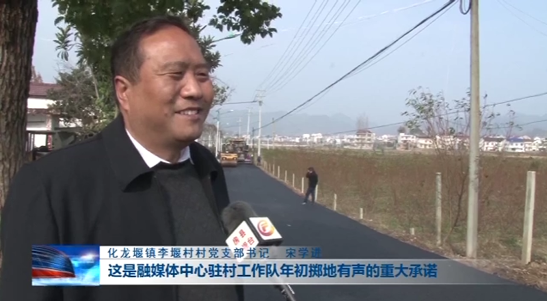 化龙堰镇李堰村村党支部书记宋学进:李堰村主干道全面黑色化这是融媒体中心驻村工作队年初掷地有声的重大承诺,今天全部得到实施,困扰我们村多年的难题今天终于得到解决,五年来,融媒体中心每年承诺一件事情全部得到解决,得到兑现。
