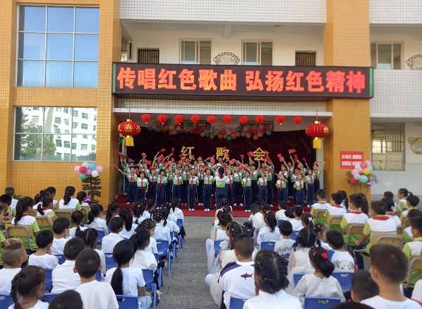 一首红歌,记录一段峥嵘岁月;一首红歌,诉说一段光辉历程;飞扬的歌声,吟唱难忘的岁月;熟悉的旋律,演绎时代的乐章。《唱支山歌给党听》、《红星闪闪》、《我和我的祖国》等熟悉的歌词、嘹亮的歌声、动人的旋律和情真意切的演唱,深深地感染着在场的每一个人。一首首红歌催人奋进,一句句颂词饱含深情。全体师生用最真诚的歌声,唱出了对党和祖国的无限热爱。歌声中重温历史,旋律中回味历史,感受着民族抗争时代的气息,在歌词的理解中品读和平的幸福,让心灵受到震撼和启迪“我们不仅要爱国,更要学习和继承先辈们不屈不挠、砥砺前行的拼搏精神。”参加此次活动的少队辅导员杨小燕说道。