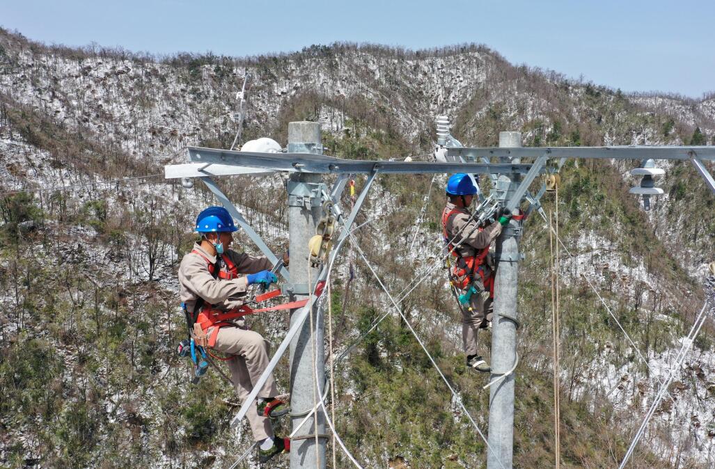 电力工人抢修输电线路