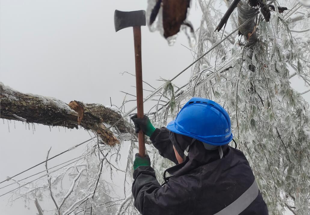 移动抢修工人清理线路倒伏树木