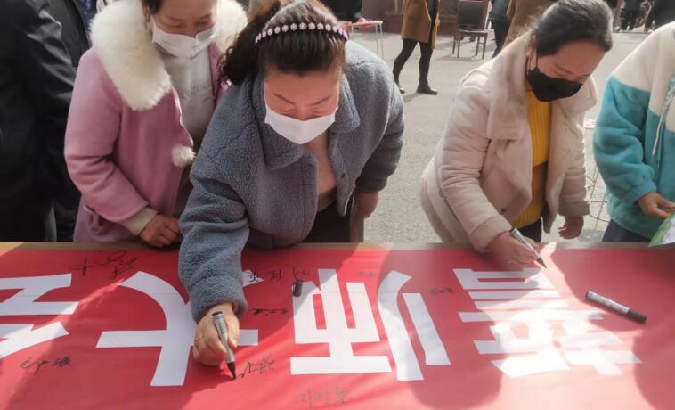 会议开始前播放暗访卫生死角记录片,乡人居办宣读上龛乡人居环境“门前三包”制度,范家垭、仓坪村书记对下一步人居环境工作推进做表态并就“门前三包”工作进一步提要求,部分商户代表作表态发言,承诺从自己做起,从小事做起,通过以身作则带动他人一起参与到环境卫生的保护工作中来,为建设宜居上龛做出自己的努力和贡献。最后,全体参会人员集体宣誓并在横幅签名,将誓师大会的气氛推上高潮。