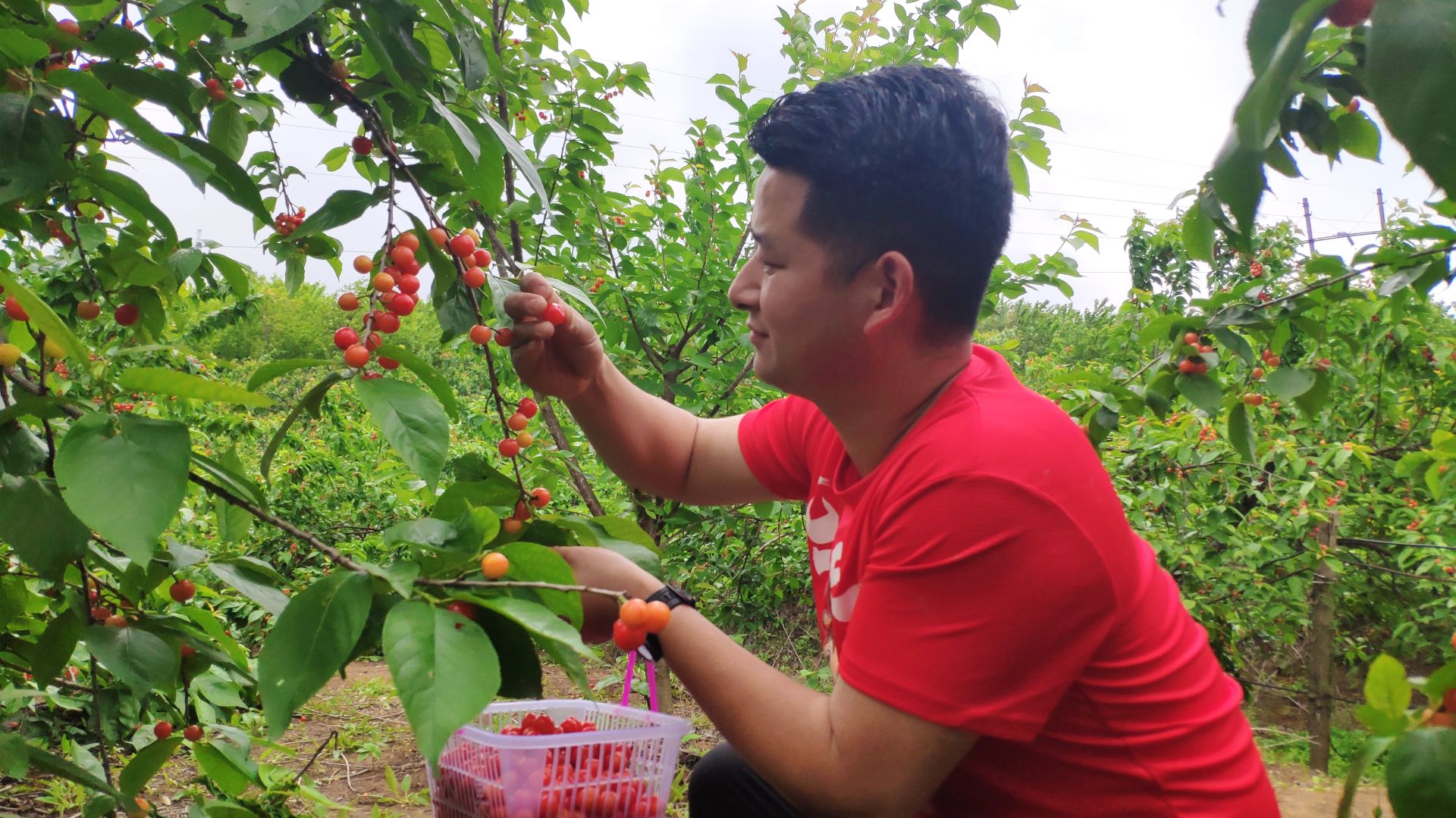 樱桃园种植户冯家伟:“我栽了有4亩的樱桃树,一年能收入三万多块钱,一年的樱桃钱要抵庄稼、农产品要抵十年开外,这比种粮食庄稼还是强些。”