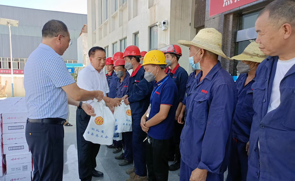 来到湖北鑫资再生科技有限公司,丁选清仔细了解企业员工工作和生活状况,赞扬他们坚守岗位、恪尽职守的奉献精神,并将防暑降温物品送到他们手中,叮嘱企业和县总工会要切实做好高温天气下防暑降温和后勤保障工作,落实劳动保障措施,合理安排好作息时间,让工人们在抓建设、赶工期的同时劳逸结合、注意防暑,继续为我县经济社会发展做出新的更大贡献。
