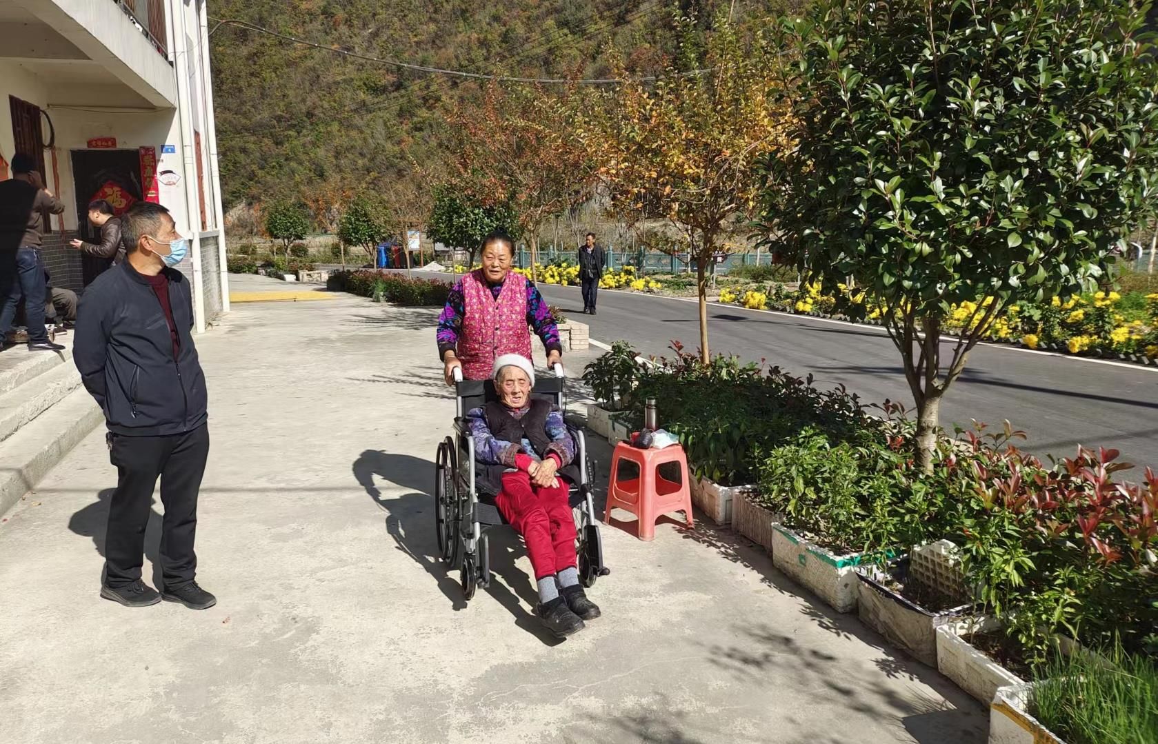 “我今年已经67岁,照顾妈妈20多年了,随着年龄越来越大,自己身体也不是太好,平时抱她出来晒个太阳越来越吃力了,带她出门看一看的愿望逐渐成了一种奢望。有了这辆轮椅,冬天我就可以推她出门晒晒太阳了,空闲了还可以带她看看乡里和村里的新变化,太谢谢你们了。”老人的女儿谢中玲一边用轮椅推着母亲在自家院子里散步,一边对上门送轮椅的干部说道。