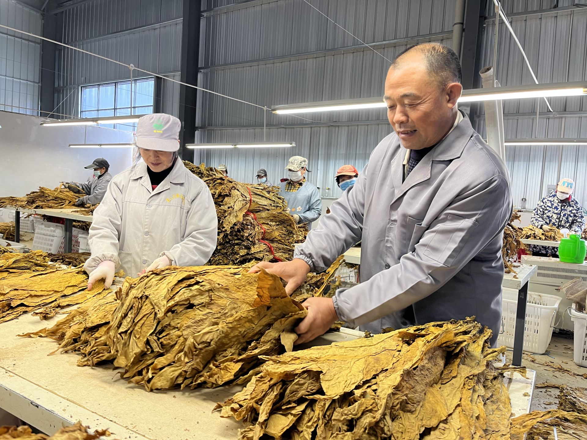 东浪村烟站站长黄尤说:“我们对烟叶进行分拣,主要是把烟叶的高等级、低等级和中等级提高起来,满足工业的的需求、满足烟农的需求,能增加烟农的收入。”