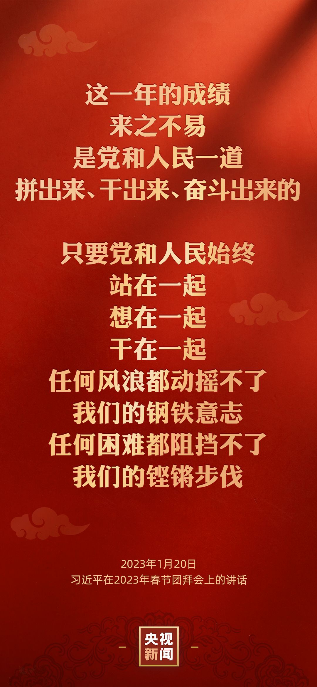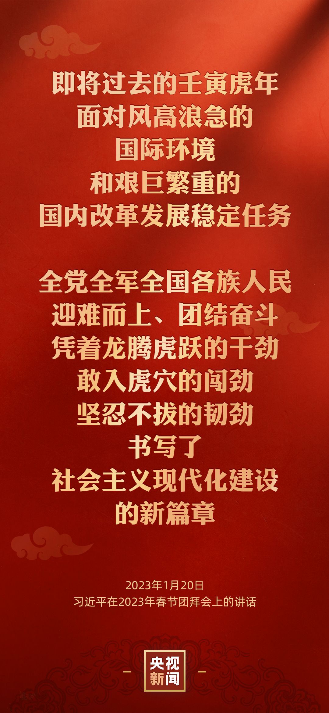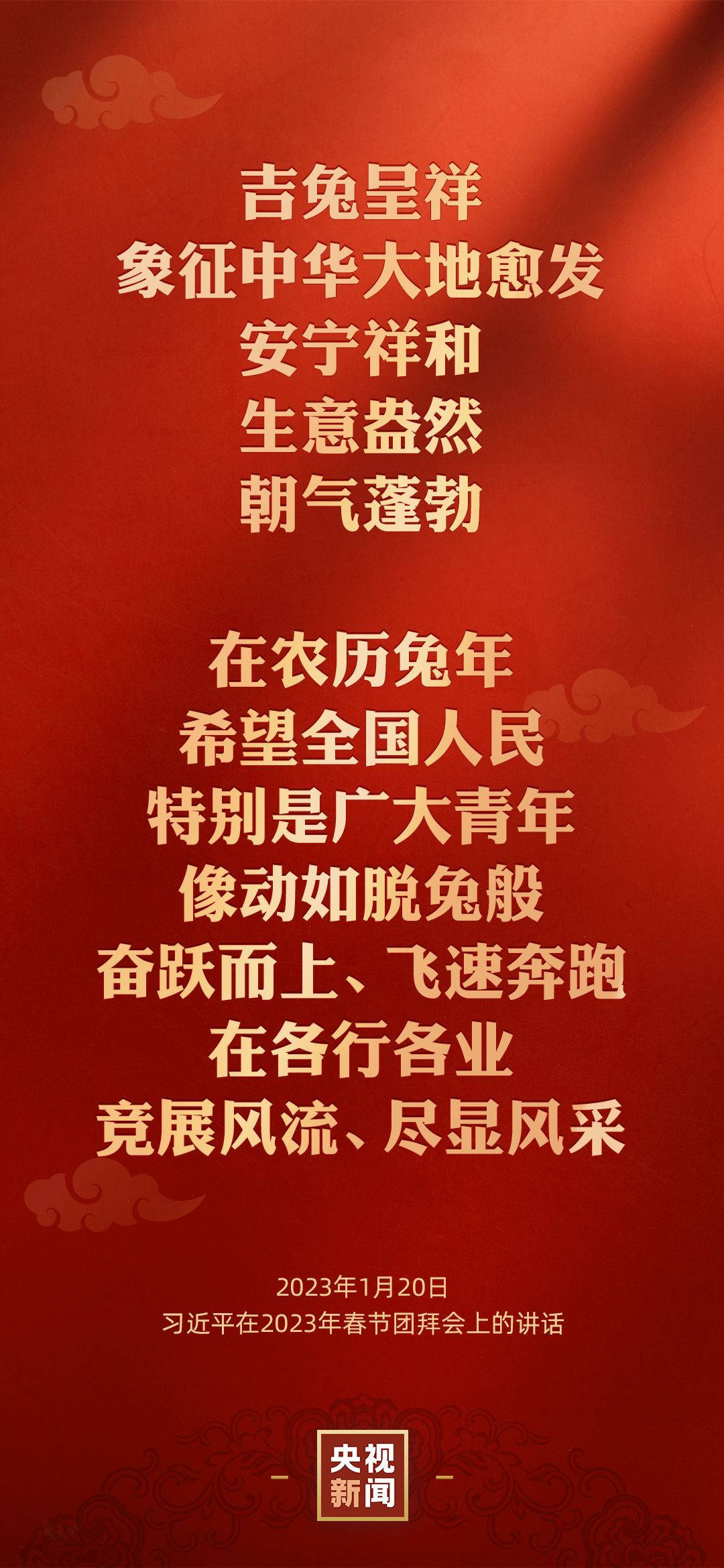 中共中央、国务院20日上午在人民大会堂举行2023年春节团拜会。中共中央总书记、国家主席、中央军委主席习近平发表讲话,代表党中央和国务院,向全国各族人民,向香港特别行政区同胞、澳门特别行政区同胞、台湾同胞和海外侨胞拜年。