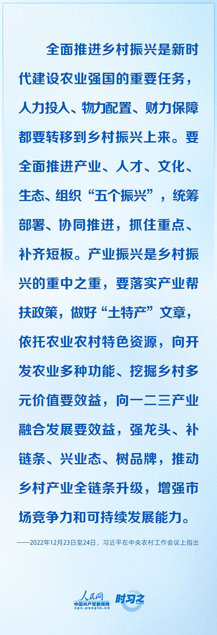 日前印发的2023年中央一号文件,锚定建设农业强国目标,对2023年全面推进乡村振兴重点工作作出具体安排。实施乡村振兴战略,是党的十九大作出的重大决策部署,习近平总书记多次在不同场合就这一战略主题进行深入阐释,这些深刻的论述是习近平经济思想的重要组成部分,为谋划乡村振兴大棋局指引方向。