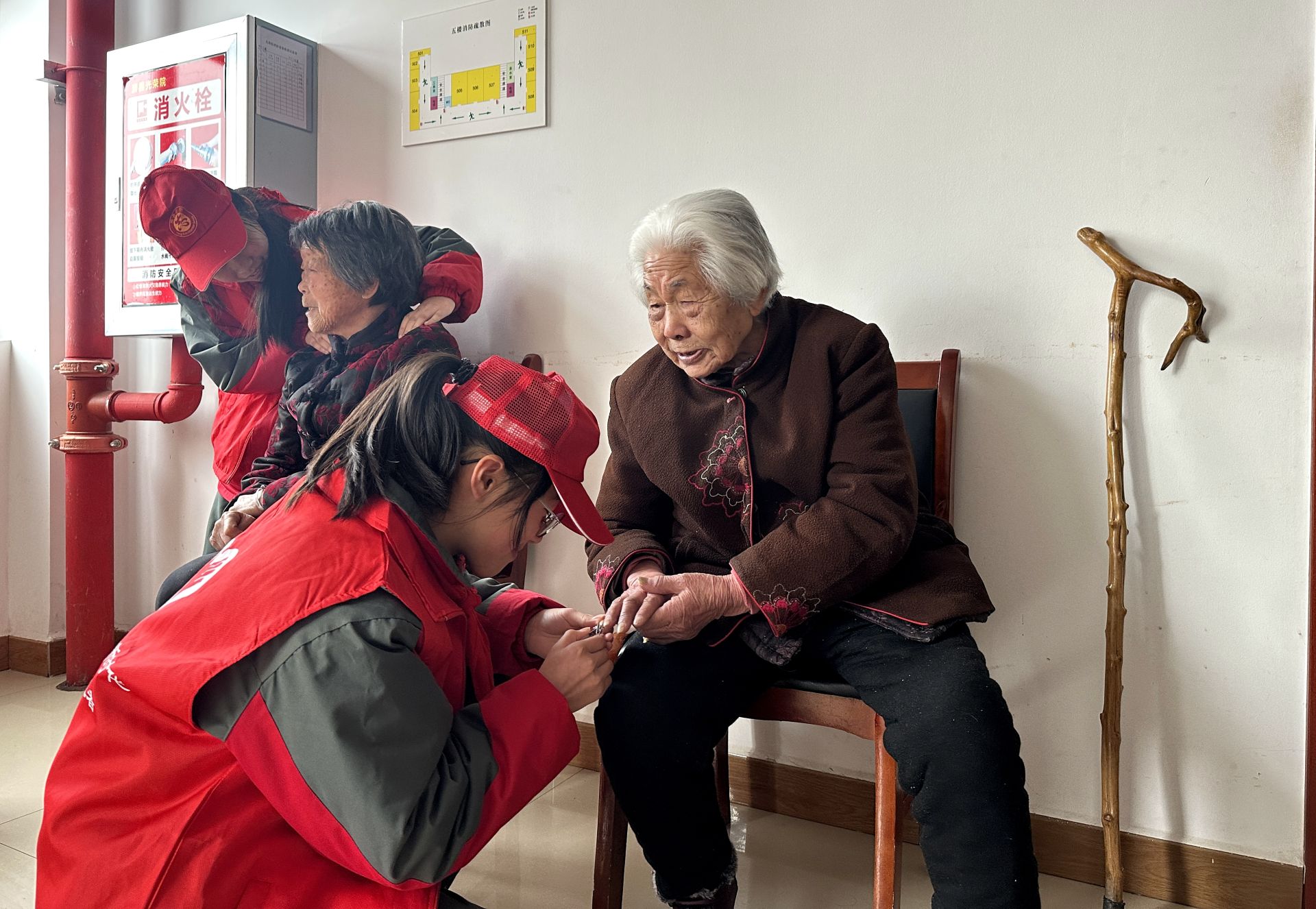 随后,学生们践行雷锋精神开展志愿服务活动,走进房县光荣院为老人打扫卫生、整理家务、剪指甲,陪老人们拉家常,聆听老人们讲述当年的革命故事,进一步弘扬了“奉献、友爱、互助、进步”的志愿服务精神。