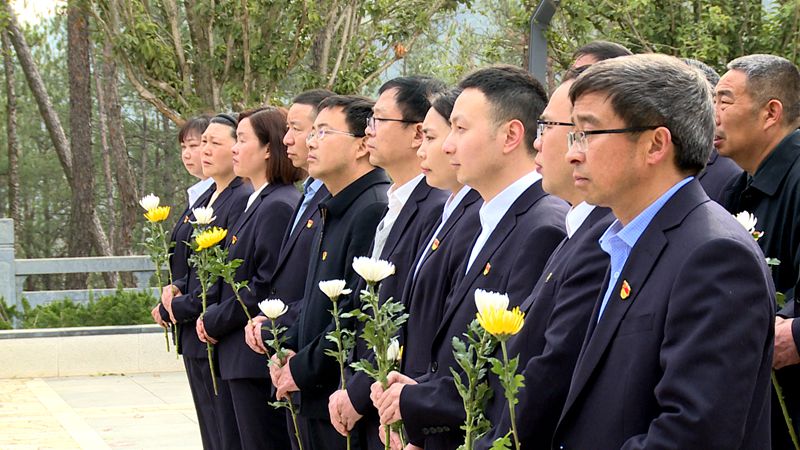 在烈士陵园,全体干部职工通过默哀、鞠躬、整理缎带、敬献鲜花等形式,深切缅怀革命先烈,讴歌他们的丰功伟绩,并组织全体党员干部重温入党誓词,以铮铮誓言筑牢理想信念,以拳拳初心践行为民宗旨。