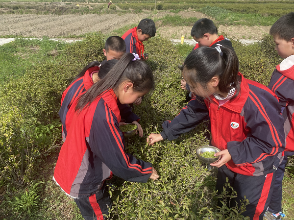 “纸上得来终觉浅,绝知此事要躬行,茶园里有美好的春光、鲜活的本土教材,孩子们在那里留下汗水就会有收获,让老师学生和大自然都有亲密的接触,这样可以让我们的‘双减’和学习落到实处。”窑淮镇中心学校校长王炎林说,把课堂搬到户外,让孩子身临其境地体验,知农时、晓农事。初步实现了劳动教育“以劳树德、以劳增智、以劳强体、以劳育美、以劳创新”的课程价值。