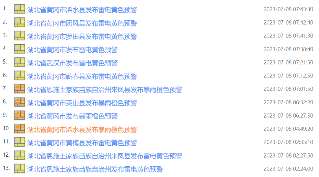 湖北多地连发暴雨、雷电预警↓↓↓