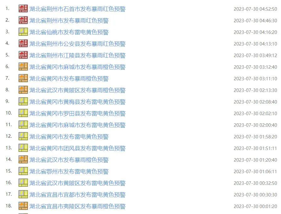 今天白天:江汉平原南部、鄂东北、鄂东南阴天有小到中阵雨或雷阵雨,局部大雨或暴雨并伴有短时强降水等强对流天气;其他地区多云有阵雨或雷阵雨。
