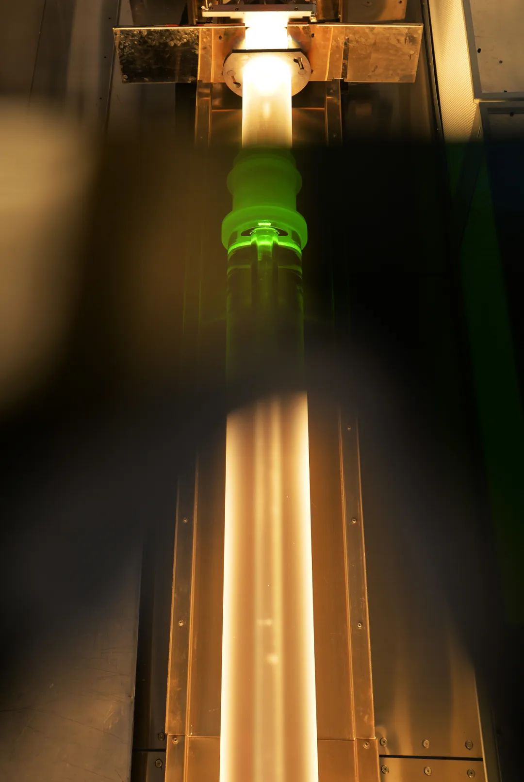 长飞光纤光缆股份有限公司生产车间,正在通过预制棒来拉丝光纤。记者周超 摄