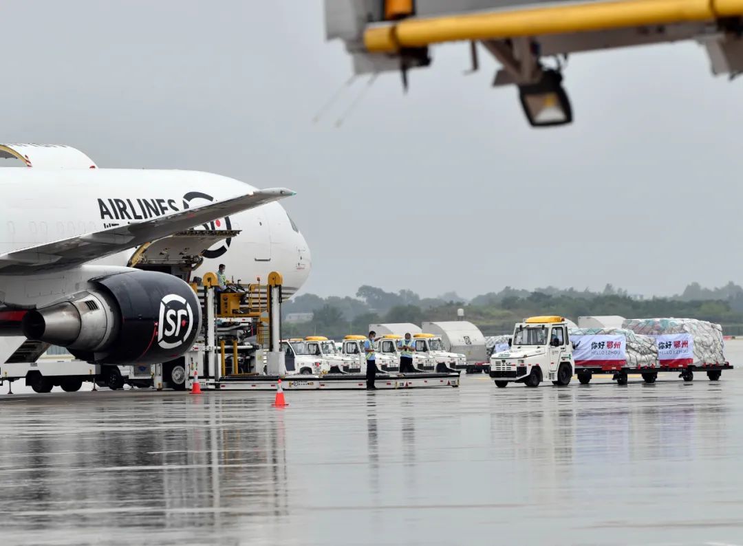鄂州花湖机场装运货物(记者李辉 摄)