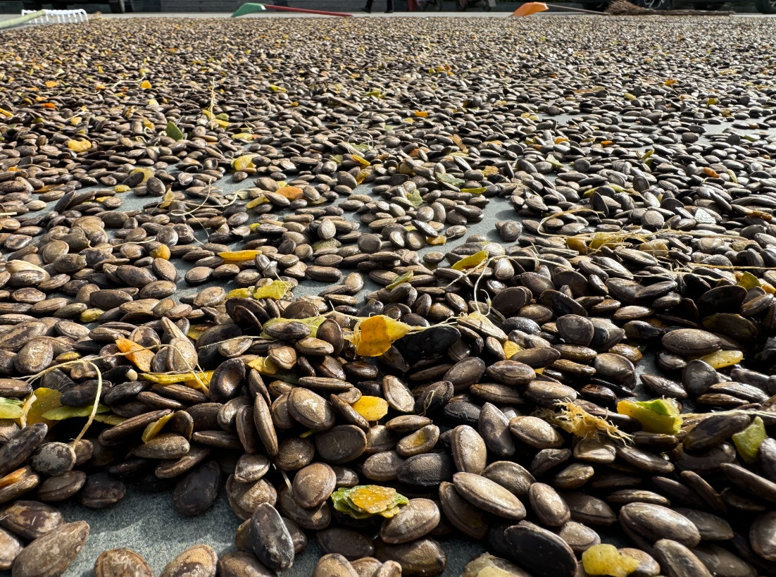 记者走进栝楼基地,看到一片热火朝天的忙碌景象,村民正抢抓晴好天气采摘栝楼,他们穿梭于栝楼架下,有条不紊地进行采摘、运输、分拣,个个脸上洋溢着幸福的笑容。