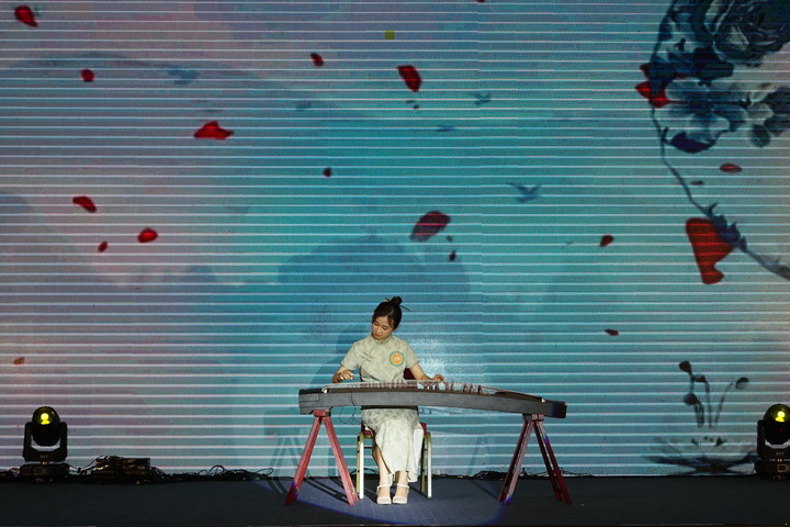 5月20日,第22届“汉语桥”世界大学生中文比赛越南北部及中部赛区决赛中,参赛大学生表演古筝和太极拳。