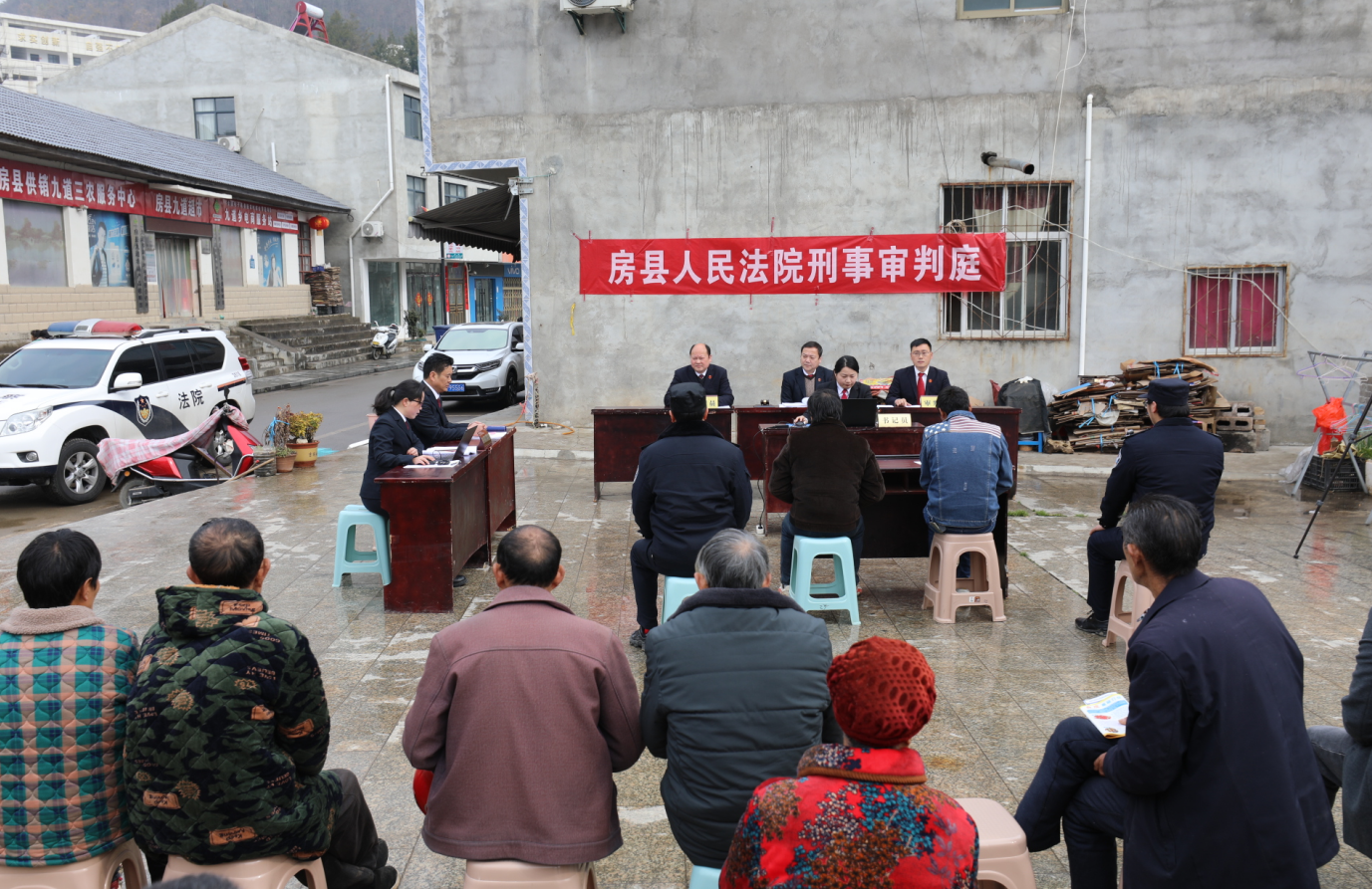 3月7日上午9点,巡回法庭在九道乡九道梁村卸甲坪村广场前宣布开庭,经现场举证质证、听取公诉人和被告人意见,综合考量后,法庭依法当庭宣判。