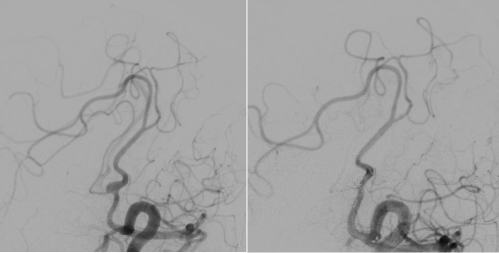 通过脑血管造影检查,罗俊杰在她颅内血管交叉处,发现2枚仅1毫米的微小动脉瘤,科室讨论后认为,后交通动脉瘤出血可能性极大,若短期内再次出血将直接威胁患者生命。