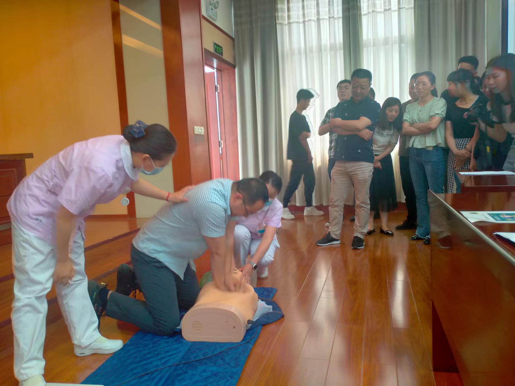 活动中,脑病科主任付毅为烟草系统职工们普及了日常健康知识,包括脑中风是什么?怎样识别中风病人?怎样预防脑中风?急诊科主任孙希贵以“急性心肌梗塞的急救”为主题,讲解了急性心肌梗死的高危人群、诱发因素、个人自救要点,为烟草系统职工提出了针对性的健康建议,帮助员工们更好地管理自己的健康。最后中医院急诊科院前急救人员在现场进行了徒手心肺复苏演示,积极与在场职工互动,并手把手指导,让大家进行了模拟体验。
