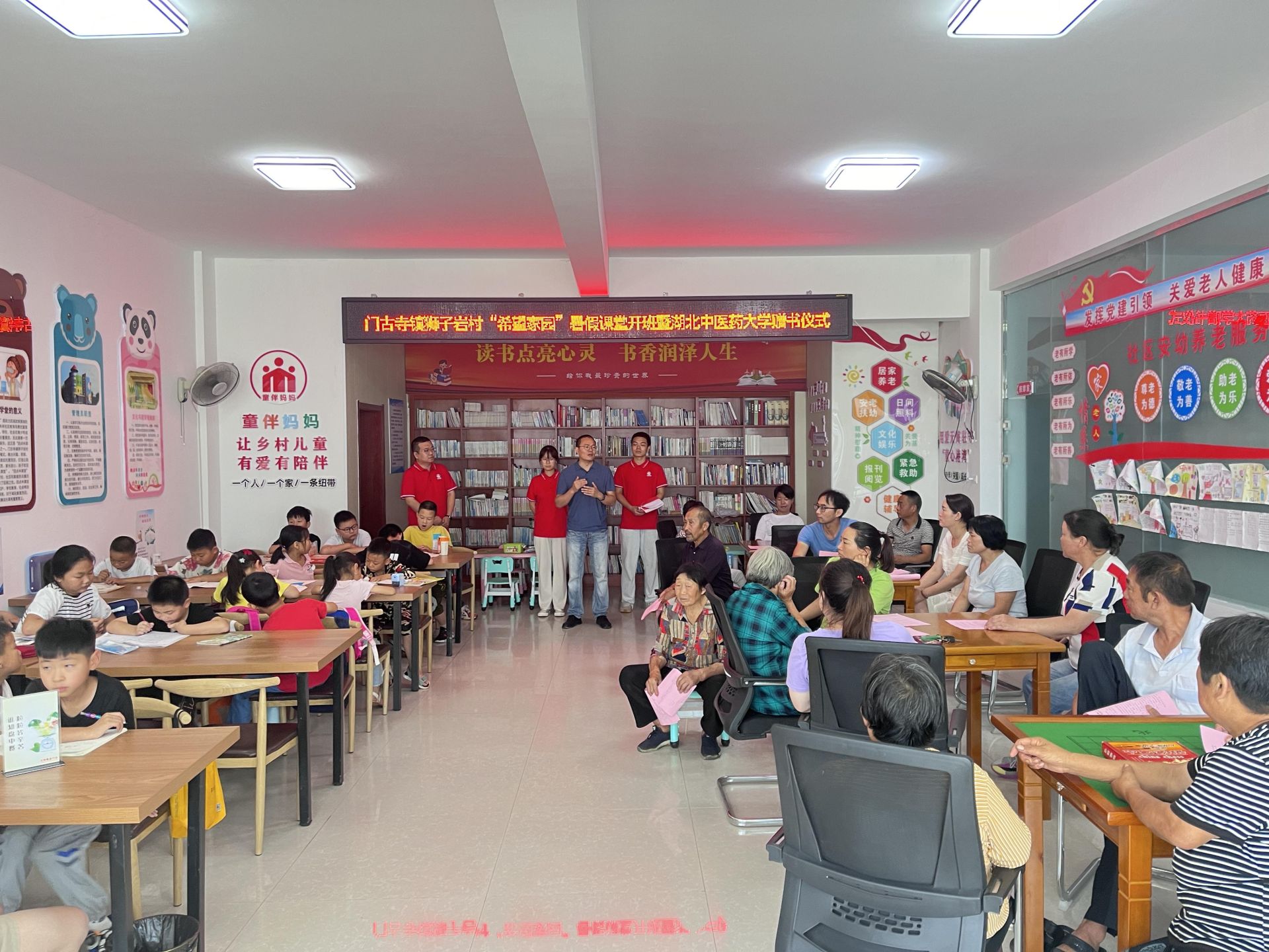 房县新闻网讯 通讯员 高田汉 饶飞 报道:为丰富未成年人的暑期生活,促进少年儿童健康成长,让孩子们度过一个安全、快乐、有意义的假期,7月15日,门古寺镇狮子岩村举行“希望家园”暑期班开班仪式暨湖北中医药大学学生工作处捐赠爱心图书仪式。