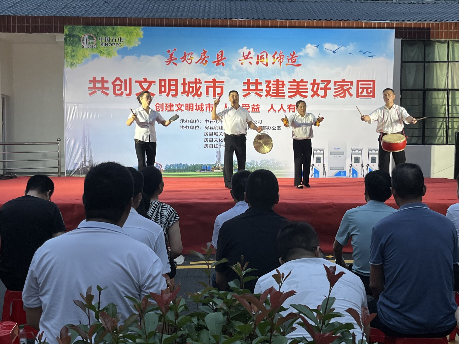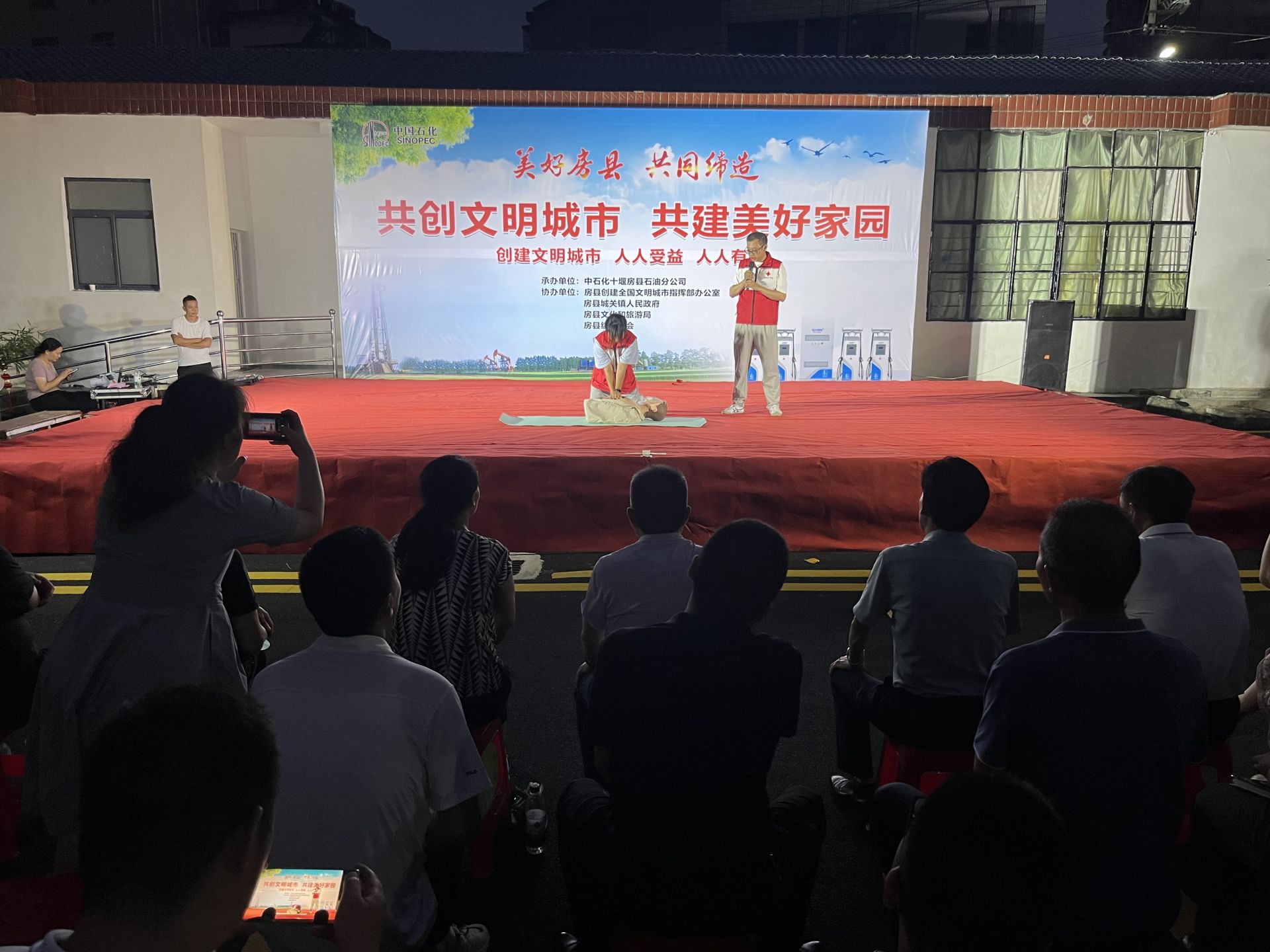 房县新闻网讯 记者 绳晓 实习生 付思源 通讯员 黄霞 报道:7月17日,城关镇石油小区迎来了一场纳凉文艺晚会,主题为“共创文明城 共建美好家园”,以文艺汇演为载体,推进社区共同缔造理念,营造和睦共融、文明向上社区氛围。活动由中石化房县石油分公司主办,县创文办、城关镇、文旅局、红十字会承办。县观摩单位、辖区居民、志愿者、党员等近200人参加活动。