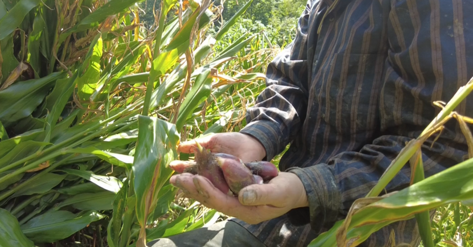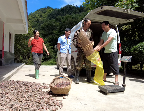 东坪村地处野人谷镇东南角,这里平均海拔1400米,昼夜温差大,气候寒润,是耐阴耐旱作物阳荷的理想种植地,阳荷品质在全县首屈上乘,因此每到收获季便吸引了天南海北的商贩聚集收购。