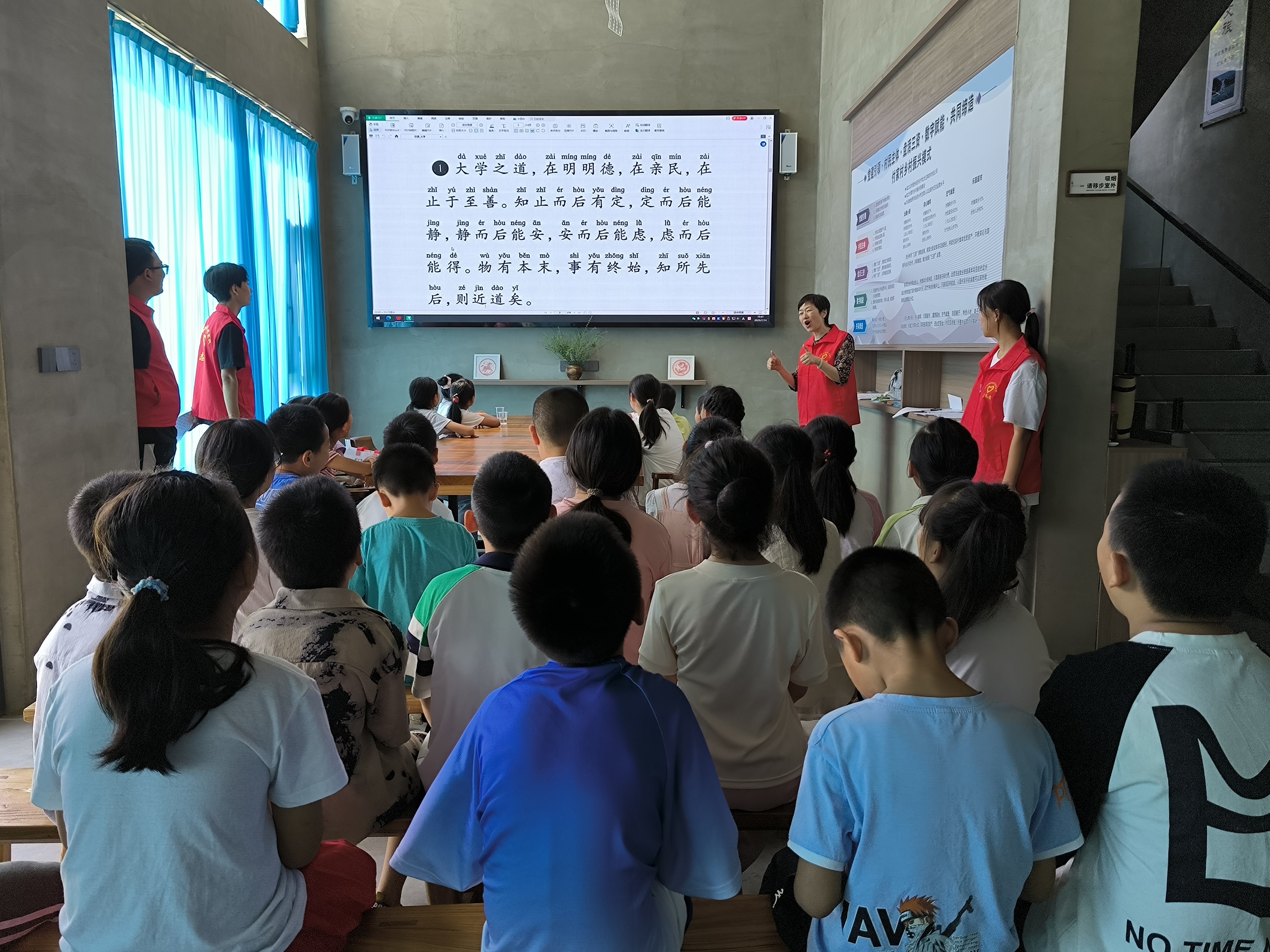 开班式上,学生和家长们的脸上都洋溢着喜悦与期待。一位三年级的小同学举着自己精心准备的绘画作品,兴奋地说:“去年我就参加了暑托班,杜老师教我们背古诗、做手工,特别有意思!” 一旁的家长笑着补充道:“去年孩子在这里不仅完成了暑假作业,还养成了每天阅读的好习惯。!” 在场的家长们纷纷点头,亲切地把这个家门口的托管班称作"暑期守护站"。