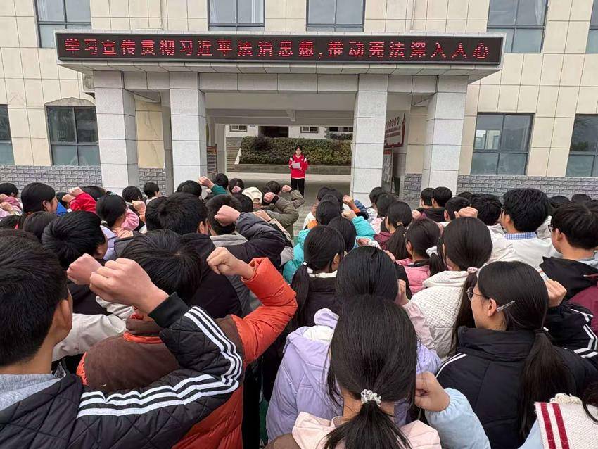 宣誓环节,全体教师高举右拳庄严宣誓,誓言铿锵彰显教育工作者恪守法治底线、忠诚教育事业的决心;优秀学生代表接力领誓,千余名学子齐声跟读,稚嫩却坚定的誓言回荡校园,将尊崇宪法、践行宪法的信念定格为青春承诺,家长们全程见证这一庄重时刻,深受触动。活动尾声,校长作总结讲话。学校将以此次活动为契机,持续推进法治宣传教育常态化、制度化,同时吸纳家长们的宝贵意见,不断优化校园环境、提升服务质量,让宪法精神浸润成长之路,让家校同心护航学生全面发展。