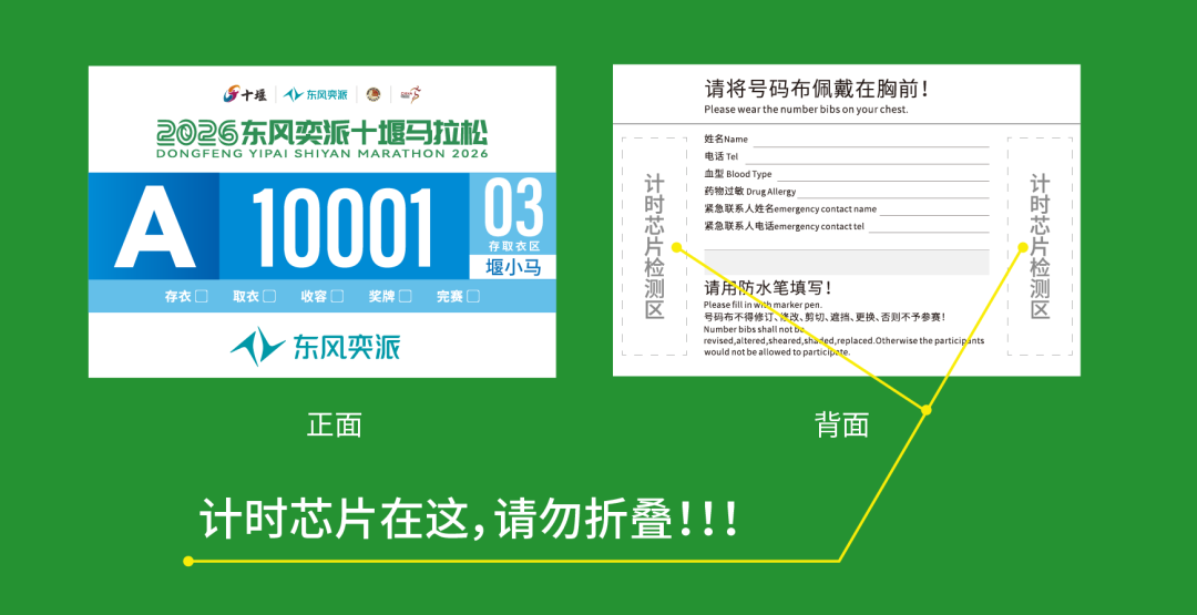 温馨提醒:号码布附计时芯片,因选手个人原因折叠、撕毁计时芯片导致无法计时的,不予申诉成绩!
