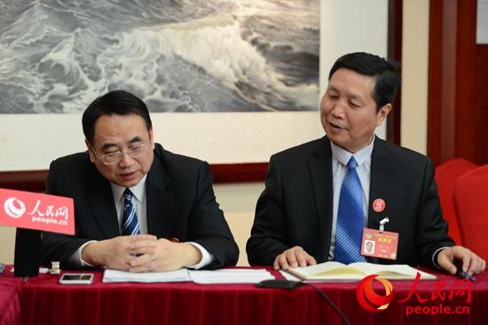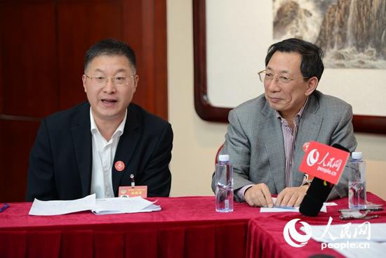 全国政协委员章义和(左)在发表自己的看法。右为全国政协委员姜耀东(摄影 熊旭)