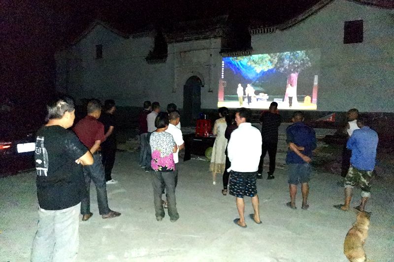 扶贫先扶智,文化当先锋,通过前期发现,村民在晚上空余时间比较多,但文化活动又比较少,为此,黄酒产业发展中心精心收集了扶贫小戏等文娱汇演节目宣传片,于29日晚间在村委会精彩上映,吸引了众多的村民前来观看,根据群众诉求,以后每周上演一场。通过这种方式,将党的好方针、好政策、好思想传播出去,让人民群众感党恩、听党话、跟党走,树立信心,自力更生、发挥主观能动性,依托产业谋发展、谋脱贫、谋小康。