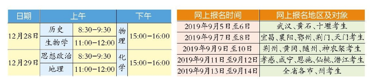 楚天都市报讯(记者王进良)记者昨从湖北省教育考试院获悉,根据《省人民政府关于印发湖北省高等学校考试招生综合改革实施方案的通知》精神,经研究,我省定于2019年12月28日至29日组织实施首次全省统考科目学业水平合格性考试(下称“合格考”)。从9月5日至14日,全省各市州考生可以进行网上报名。