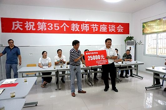 县政协、万峪河乡党委政府一行来到万峪中学,召开座谈会,与教师们亲切交谈,老师们交流了从教感悟,县乡领导给与教师们节日的祝福和期望。活动现场,万峪河乡党委政府领导赠送教师节慰问金25000元;县邮政银行为万峪河乡35名老师捐赠了价值13000元床上用品;房县老兵路桥公司经理汪祖勋捐赠慰问金10000元;万峪河乡在外创业成功人士邱远兵捐赠慰问金10000元。