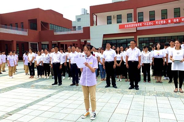 接着思源学校全体教师在张瑛波校长的带领下在国旗下进行了集体宣誓,立志做一名有理想信念、有道德情操、有扎实学识、有仁爱之心的“四有”好教师。