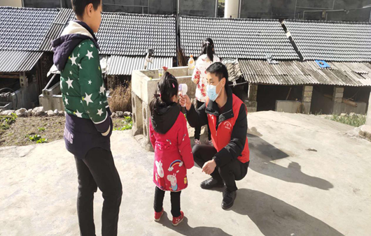 在他的积极号召下,村里的疫情防控志愿者队伍增加到了十几人。从大年初一开始,他和村干部一起,排查出武汉返乡人员21人,耐心给他们讲道理,监督他们自觉进行居家隔离,每天上门给他们测量两次体温。随着疫情进一步发展,为切实落实全员体温监测工作,他每天早上8点就同其他志愿者、村“两委”干部一起挨家挨户为每一位村民测量体温,并进行详细登记。为了增加村民的自我防护意识,他针对毛家河村实际情况制作相应的疫情防控知识宣传单,通过微信群和宣传车做到宣传工作全覆盖,并入户为个别群众做讲解。晚上,他就去村口道路卡口协助值班值守。