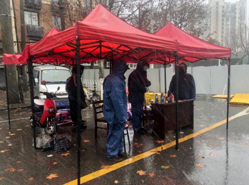 接到防控升级要求后,六合社区联合下沉到社区的党员干部强化小区管控,实行全封闭管理。各小区只留一个出入口,只许参与保障的人员出入。此前,对于老旧小区,社区策略是守住重点院落,今早,社区就加派人手,覆盖全部小区。