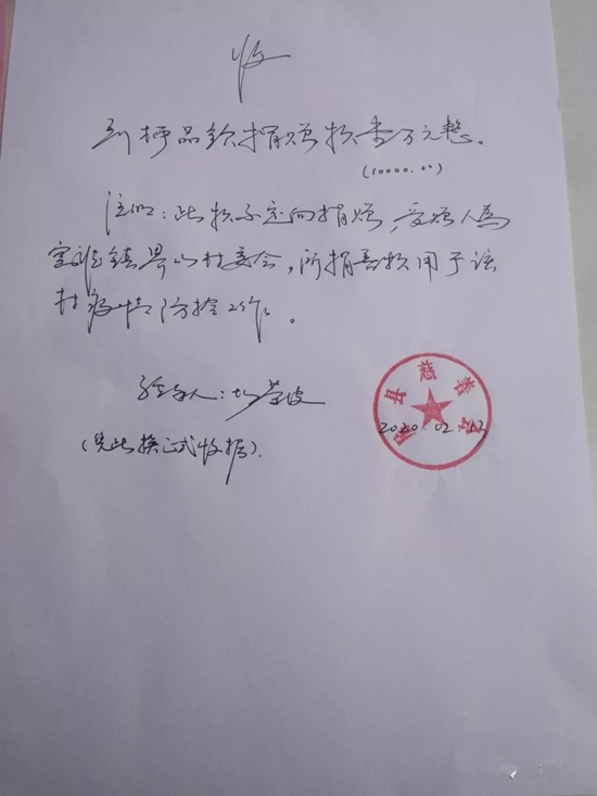 带着老人的嘱托,在县老干局工作人员向房县慈善会说明老人的捐款意图后,在场的所有人员无不为柯老的家国情怀和大公无私的奉献精神所感动,房县慈善会工作人员双手接过这笔沉甸甸的善款,对老人的善举表达了深深地谢意,并表示会遵从老人的意愿,第一时间将这笔善款拨付给窑淮镇界山村用于疫情防控,随后为老人出具了收据及感谢信。"虽然我退休了,但是退休不退党,我是在党的教育和培养下成长起来的,我随时准备着。"在这场疫情防控阻击战中,年过九旬的柯品钦老人像一匹负轭老马,用自己的方式表达着共产党人“不忘初心、牢记使命”的责任与担当。