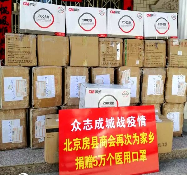 据北京房县商会会长付海兵介绍,这次捐赠的口罩,是在商会名誉会长、中电投公司原副总经理邹正平的协调下,得到浙江建德供电局大力协调支持,购买了这批口罩,几经辗转送达房县;此前的2月12日,北京房县商会向房县捐款56万元助力抗疫,购买的550箱消毒液等物资已运达房县疫情防控指挥部物资仓库,对房县抗击疫情以有力的支持。