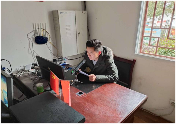 晚上回到村后,他立即撰写了虎尾沟疫情防控宣传稿并录了音。第二天早上就开始用音箱在小区,公路沿线巡回播放。村民听着操一口外地口音的广播,内容也很“接地气”,纷纷呆在自家阳台、道场拿出手机录像转发朋友圈。一上午全村巡回宣传下来,下午在路上转的人就基本没有了,在广场晒太阳的也纷纷回家了,三五成群聚焦的也全部散开了。
