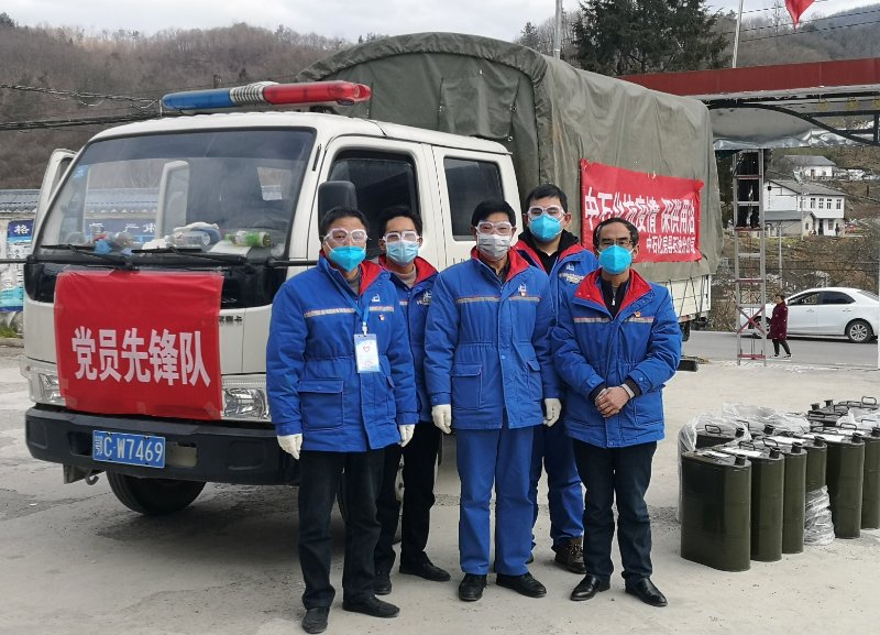 接到求援电话,中国石化十堰房县分公司党员防疫突击队迅速行动,2月19日中午,孙希乾、周文兵、代安平、蔡俊、吴士昊等五名突击队员和志愿者,自告奋勇投入防疫油品保供,灌装、装车、运输一气呵成,及时将100桶30升装成品油分送到了野人谷镇政府、卫生院等13个防疫重点单位,解了该镇防疫用油的燃眉之急。