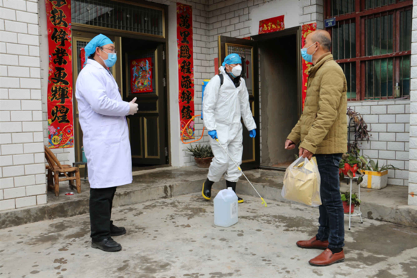 房县新闻网讯 通讯员 刘智宝 报道:2月21日,笔者在军店镇中心卫生院门口,见王加双院长左手提袋中药,右手提着一壶消毒液,一个全服武装背着喷杀器,严然如奔赴战场的防化兵战士跟随其后。询问得知,他们是去村重点防控点为重点防疫区域消毒,同时为宅家隔离人员送防疫防护用品的。征得同意一同前往。