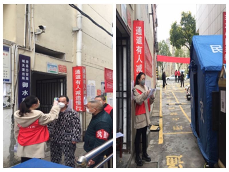就读于武汉音乐学院的李田田在为居民测量体温、入户排查。