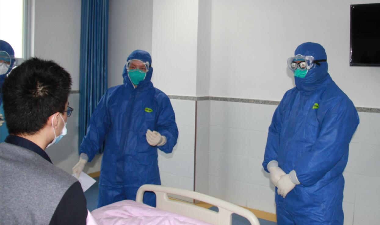 经过测体温、消毒等一系列严格的过程,我们来到了医院隔离治疗点的安全区,与医院的医护人员进行交流,了解流调对象刘某的基本情况,以便于有针对性的对进行调查。